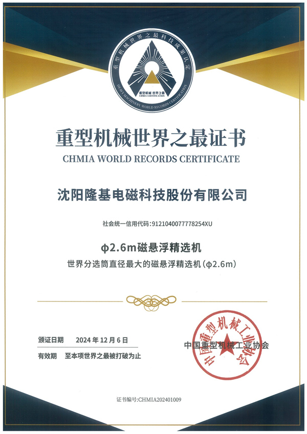 Φ2.6m磁懸浮精選機(jī)(LJC-26000)憑借卓越的技術(shù)性能和創(chuàng)新性獲得認(rèn)定 2025-01-01