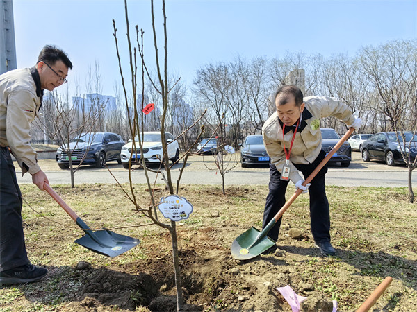 公司高層領(lǐng)導(dǎo)與各部門員工齊心協(xié)力,化身“護(hù)林人”,共同投入到這項綠色行動中。大家領(lǐng)取樹木,揮鍬鏟土、扶樹正苗、提水澆灌、掛心愿卡,一系列動作流暢而有序。經(jīng)過一番辛勤勞動,150株樹苗在和煦的春風(fēng)中昂然挺立,為這片土地注入新的生機(jī)與活力。