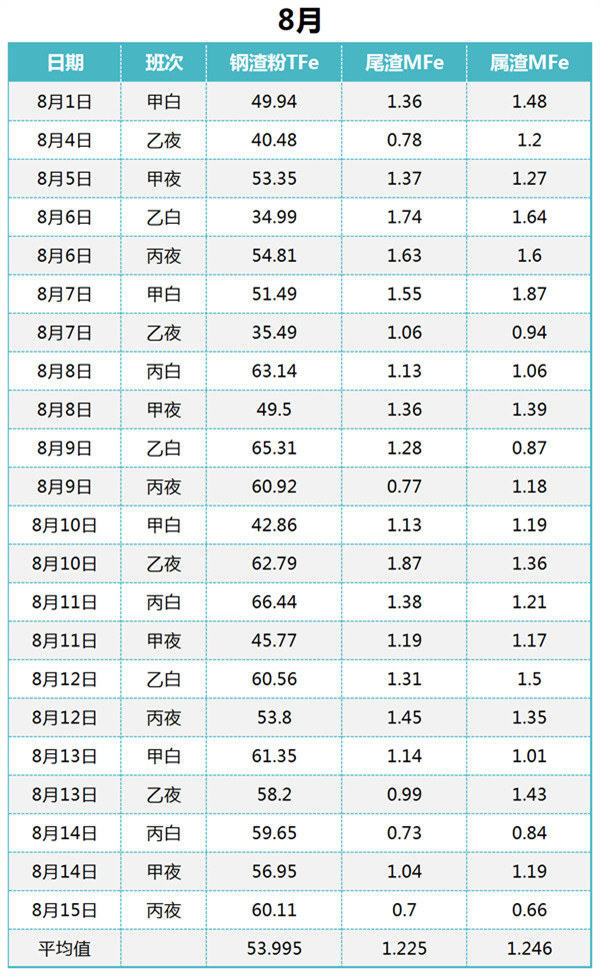 值得一提的是,在2023年6月至8月的連續(xù)跟蹤監(jiān)測中,該生產(chǎn)線的磁選粉和尾渣指標(biāo)均表現(xiàn)出色。磁選粉的全鐵指標(biāo)超過50%,尾渣金屬鐵含量穩(wěn)定在1.2%左右,遠低于國內(nèi)平均水平。這一優(yōu)異表現(xiàn)不僅降低了有害元素和廢渣的二次冶煉需求,還顯著減少了尾渣中金屬鐵的流失。據(jù)客戶反饋,各方面數(shù)據(jù)依舊保持穩(wěn)定。