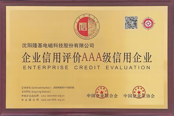 近日,沈陽(yáng)隆基電磁科技股份有限公司榮獲由中國(guó)企業(yè)聯(lián)合會(huì)、中國(guó)企業(yè)家協(xié)會(huì)聯(lián)合頒發(fā)的“AAA級(jí)信用企業(yè)”稱號(hào),展現(xiàn)出卓越的信用水平、經(jīng)營(yíng)能力、綜合實(shí)力和發(fā)展?jié)摿Α?/p>