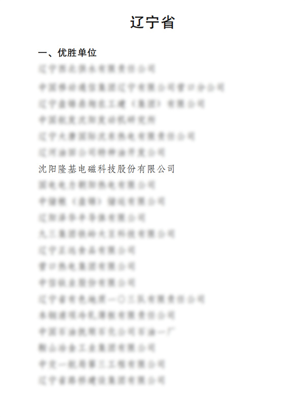 中華全國(guó)總工會(huì)、應(yīng)急管理部、國(guó)家衛(wèi)生健康委員會(huì)聯(lián)合發(fā)文表彰全國(guó)“安康杯”競(jìng)賽先進(jìn)集體和優(yōu)秀個(gè)人。沈陽(yáng)隆基電磁科技股份有限公司榮獲全國(guó)“安康杯”競(jìng)賽優(yōu)勝單位稱(chēng)號(hào)。