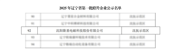 近日,遼寧省科學(xué)技術(shù)廳正式公布《2025年遼寧省第一批擬備案雛鷹瞪羚獨(dú)角獸企業(yè)名單》,沈陽隆基憑借持續(xù)創(chuàng)新能力、高速成長(zhǎng)態(tài)勢(shì)及前瞻戰(zhàn)略布局,成功入選“瞪羚企業(yè)”。