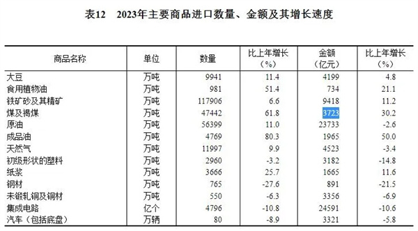 全年貨物進(jìn)出口總額417568億元,比上年增長0.2%。其中,出口237726億元,增長0.6%;進(jìn)口179842億元,下降0.3%。2023年進(jìn)口煤炭47442萬噸,比上年增長61.8%,金額3723億元,比上年增長30.2%。